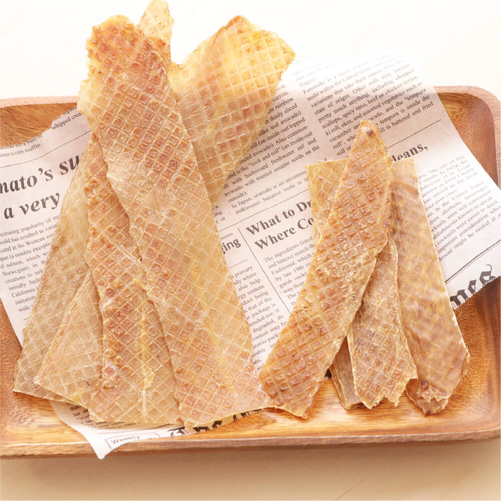 ・初めて与える場合や硬いものに慣れていない場合、丸呑みしてのどに詰まらせる可能性があります。飼い主様が手で持って与えていただく、柔らかくなるまで噛んでから食べていることを確認いただくなど、必ず監視のもとお与えください。