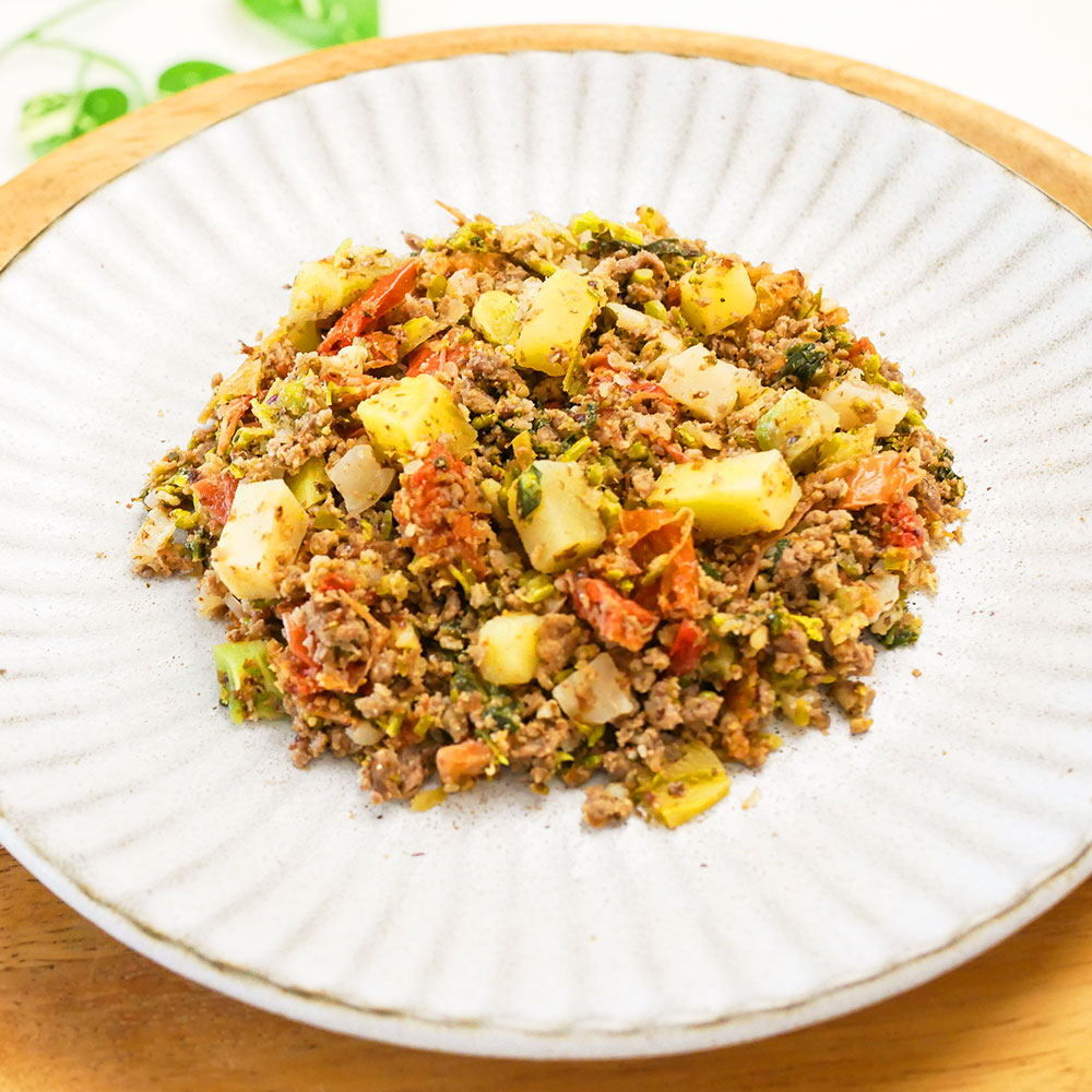 たっぷりのお野菜もスチームで調理することで、栄養はそのままに、シニアや硬さが苦手なワンちゃんも召し上がりやすい柔らかさにお作りしています。