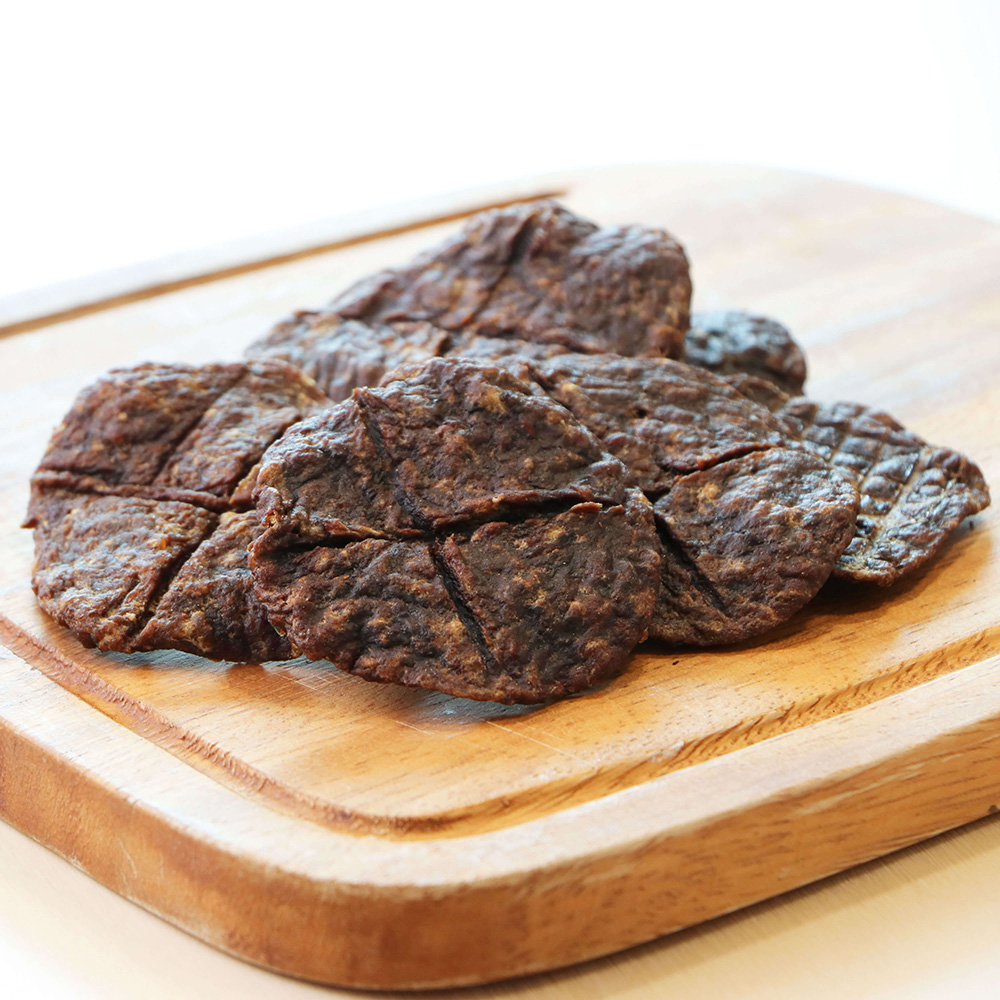ヒューマングレードの馬肉ミンチを使ってお作りした「馬肉ドライバーグ」はおやつ、ごはん、と様々なシーンでご活用いただける万能フード。