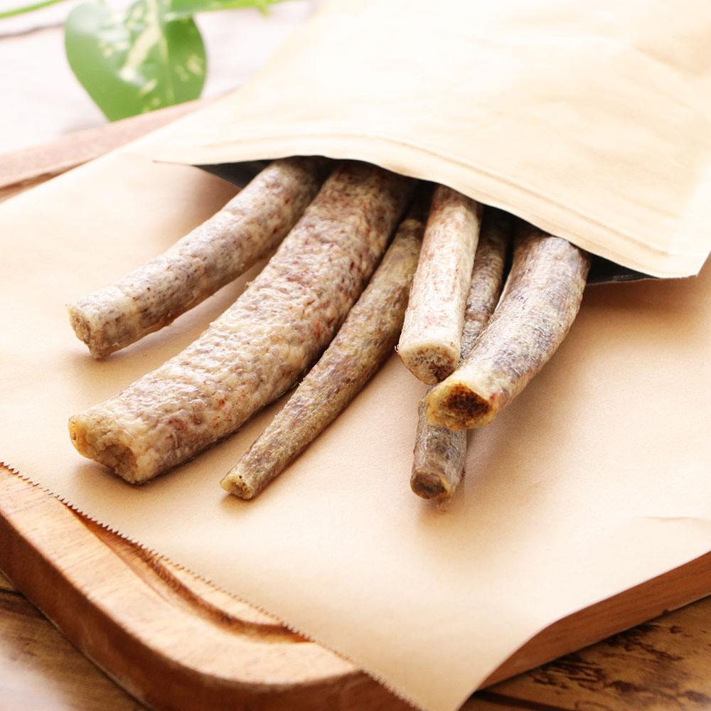 希少な馬のあばら骨を使い、低カロリーで体重管理にも配慮した骨おやつをお作りしました。