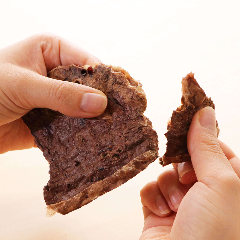 馬肉ラングジャーキーは、馬の肺「ラング」を使ってお作りした、高たんぱく・低脂肪の無添加おやつ。