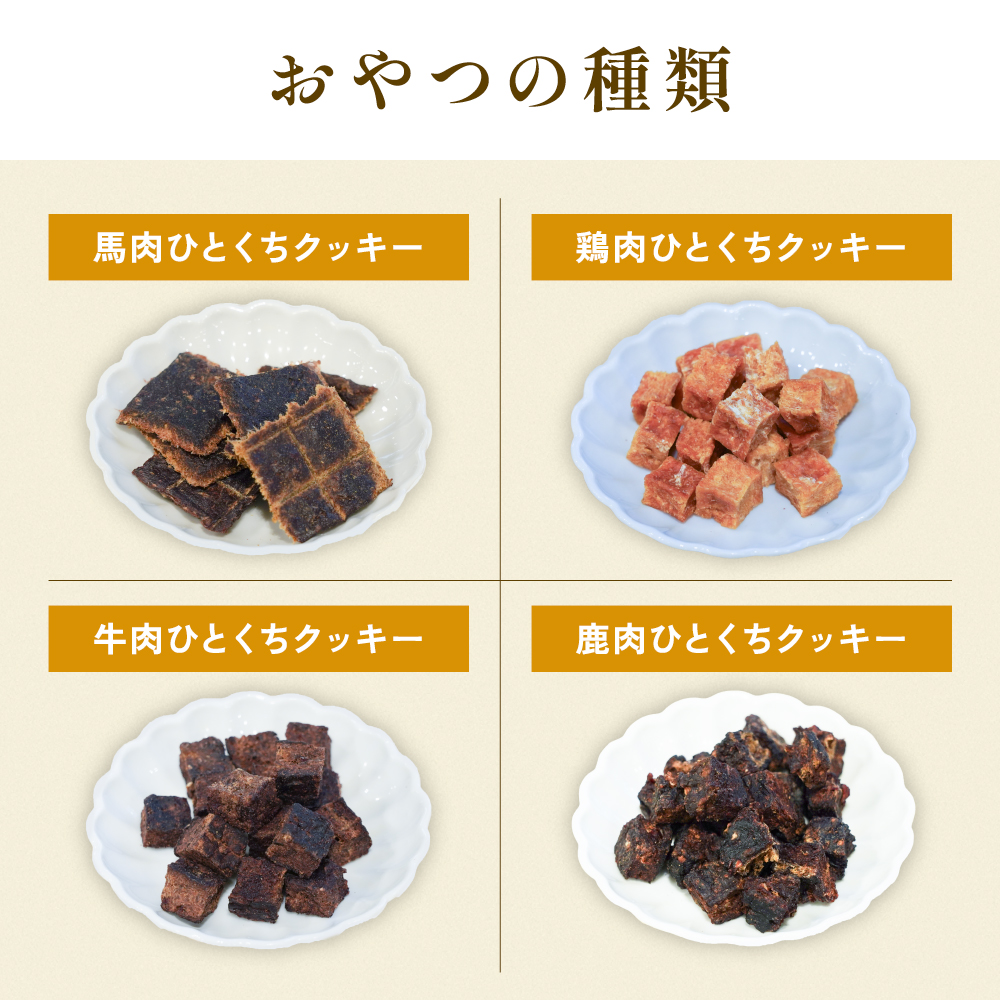 ・おやつの種類は選べません。また、「鹿肉のみを取り除いてほしい」などのご対応は出来かねます。