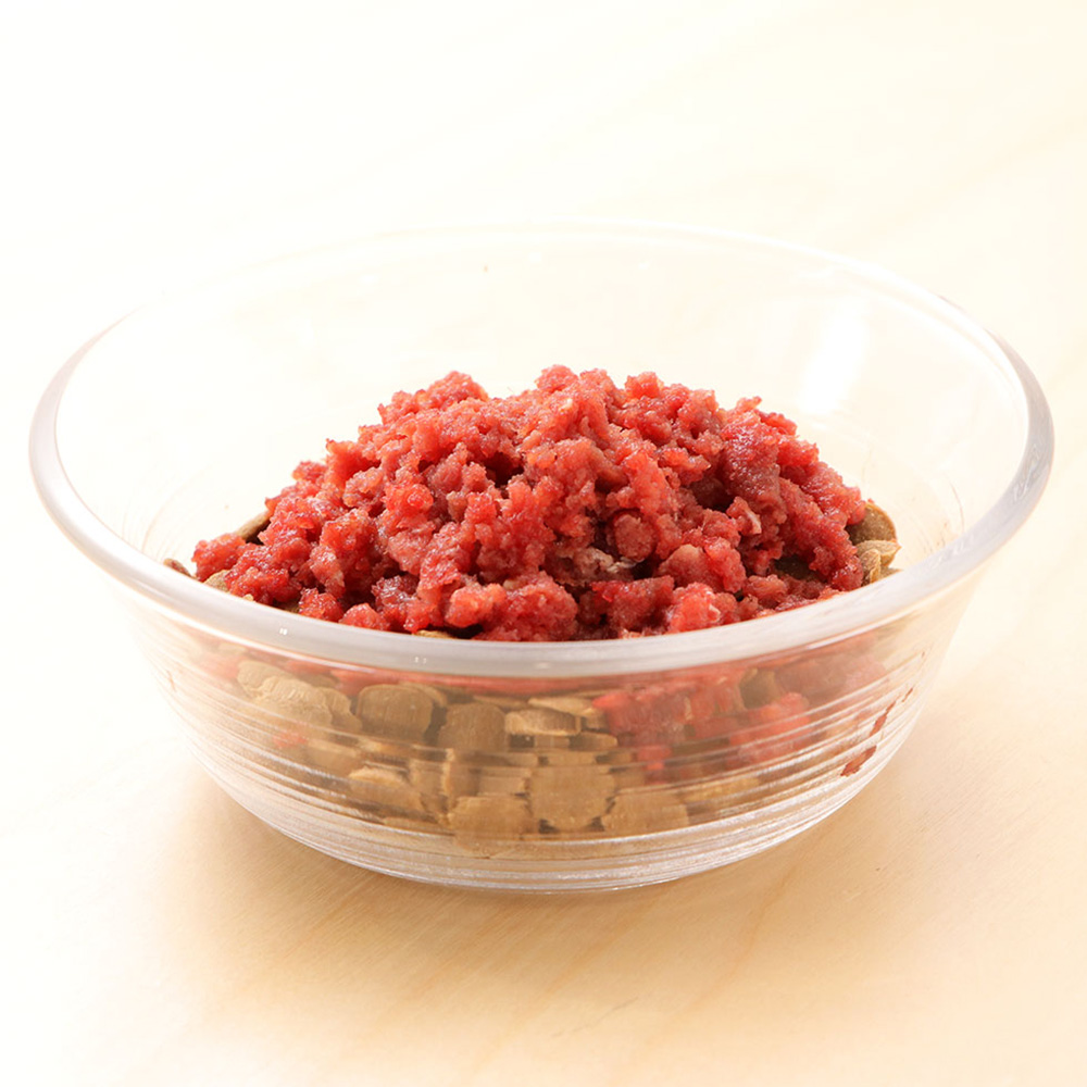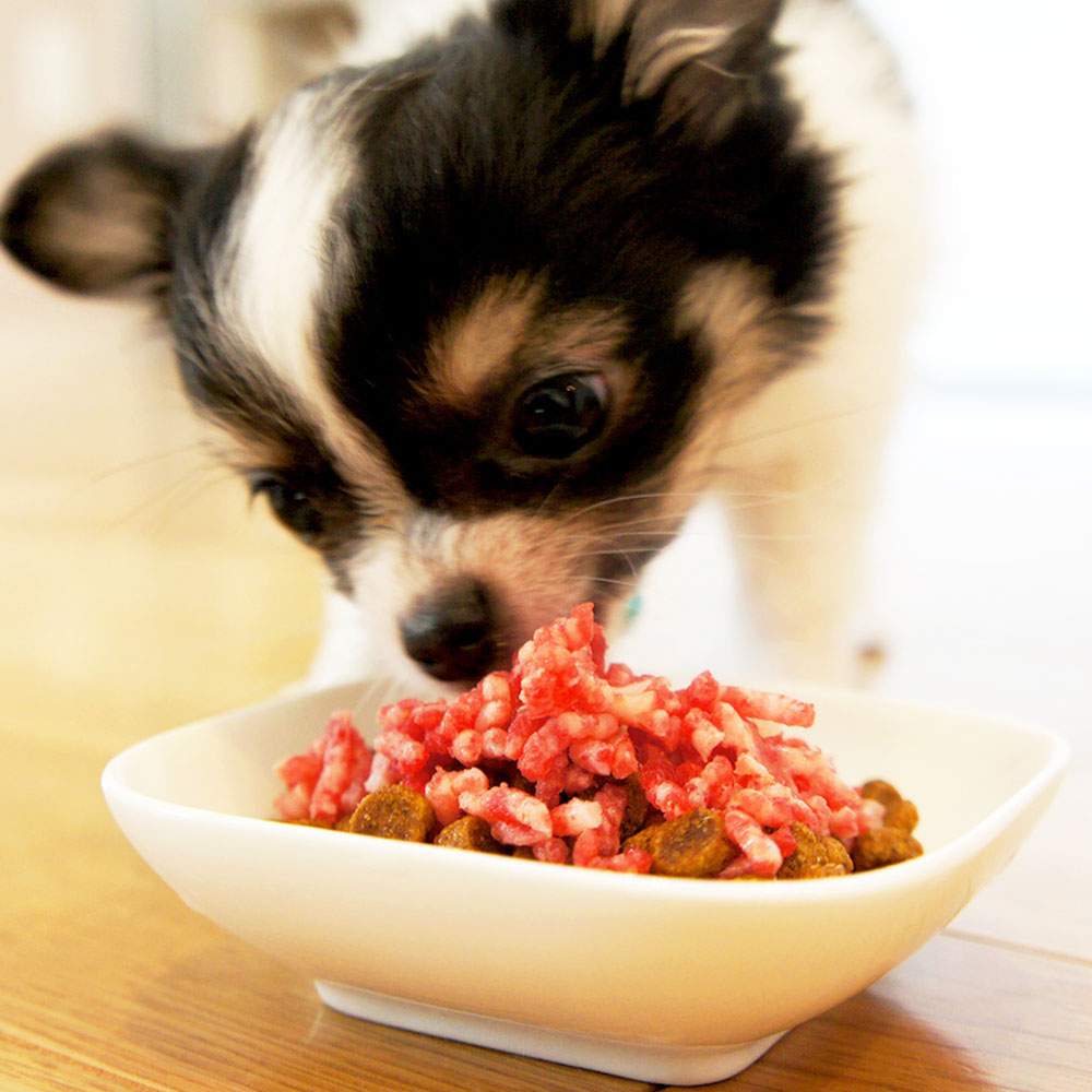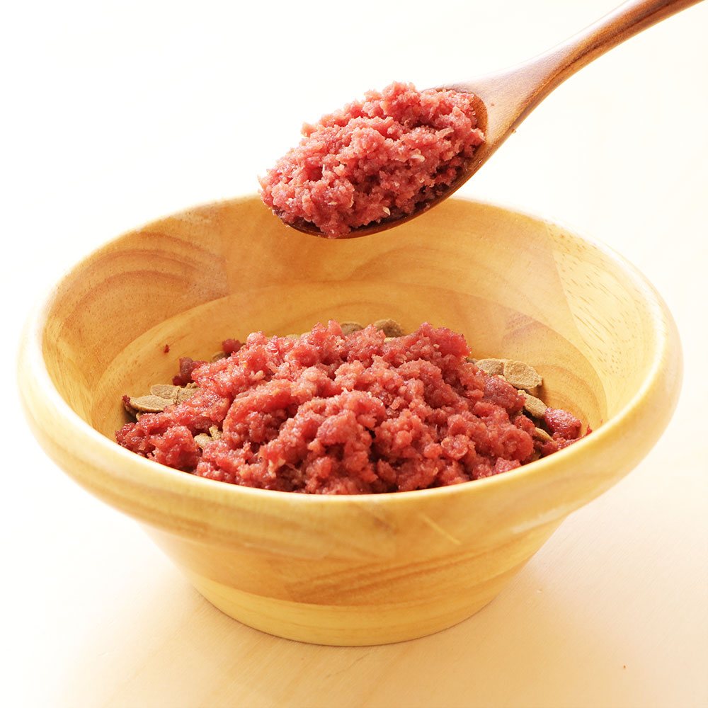 ・初めて生肉を与える場合はスプーン1杯程度を与え、徐々に量を増やしてください。