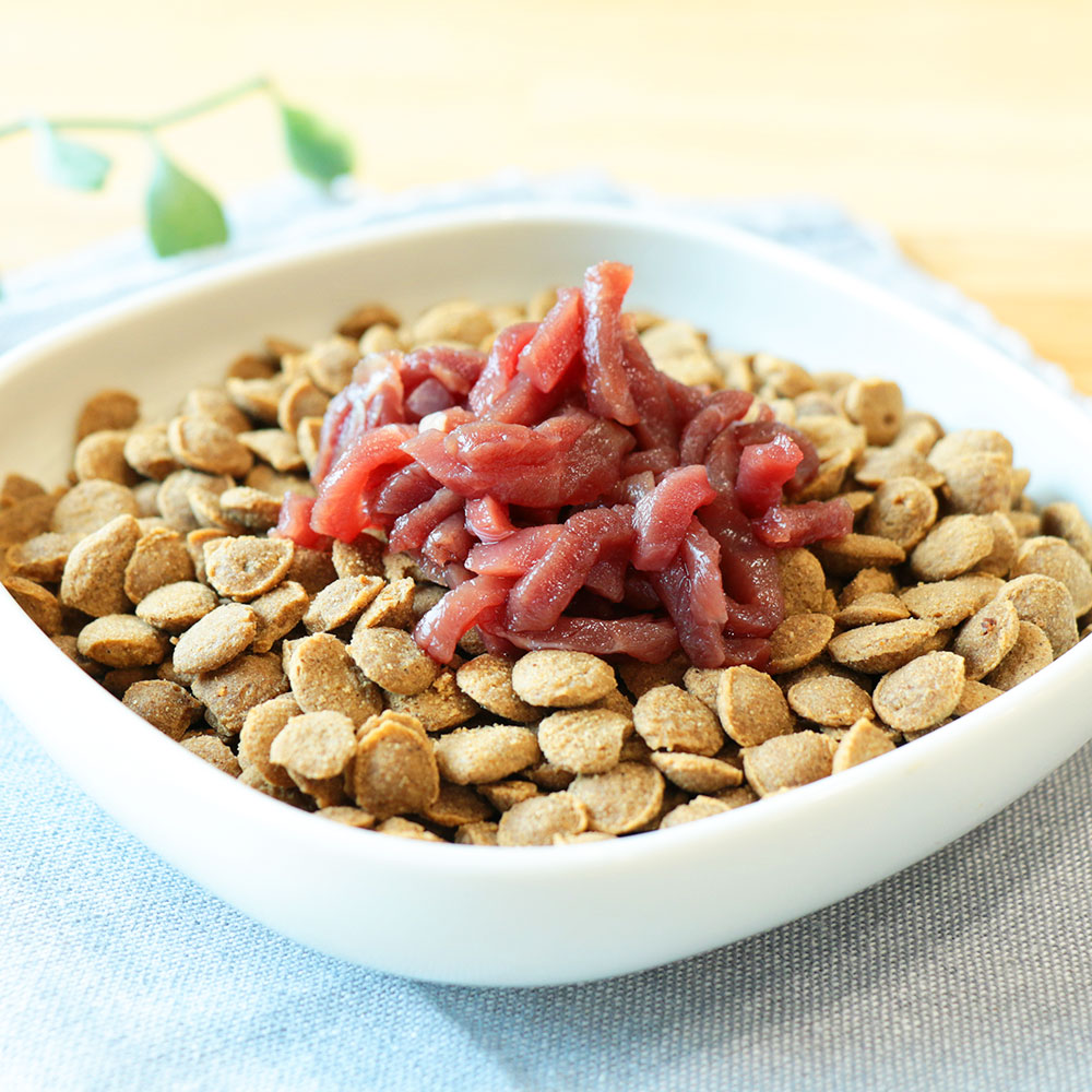 すでにカットされたお肉のため、いつものごはんに手軽に取り入れやすく、手作り食やトッピングとしてもおすすめです。